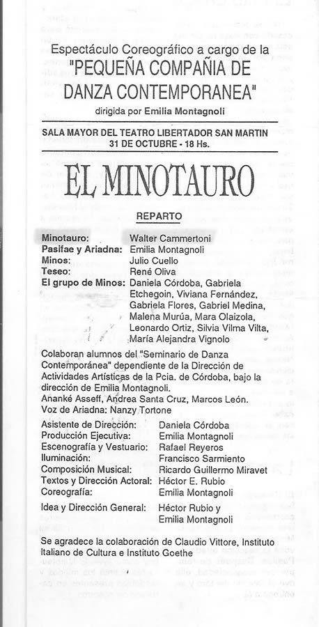 "La aparición del Minotauro se transformó en el momento más placentero de esta obra; Walter Cammertoni eligió una composición delicada del monstruo repulsivo, emblema del ostracismo al que todos estamos más o menos sentenciados." La Voz del Interior, 03/11/1993